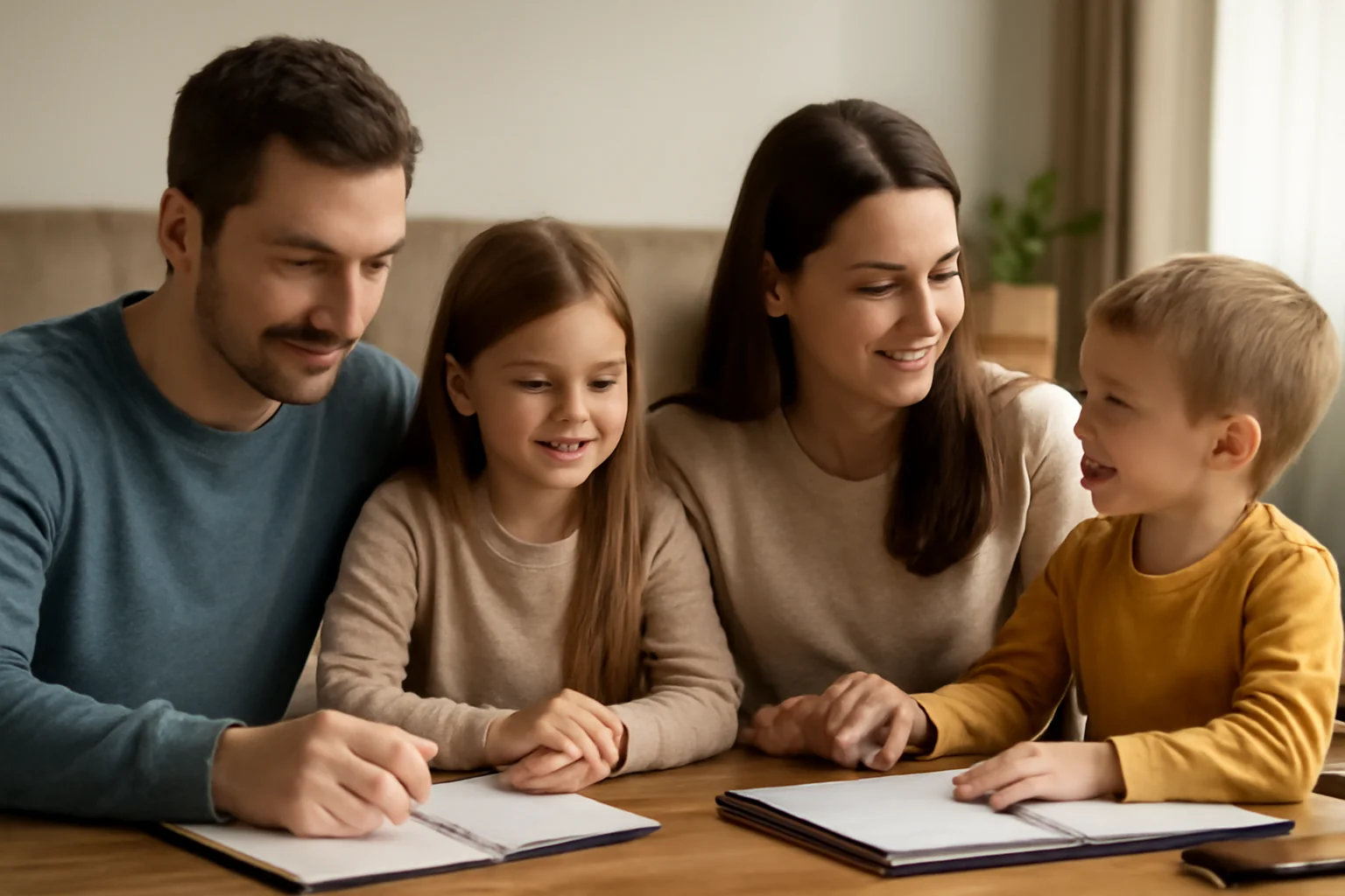 - Problemele și soluțiile: Abordați deschis dificultățile sau momentele de stres și căutați împreună soluții creative. Implicați copiii în aceste discuții, adaptând limbajul la vârsta lor. Când se simt ascultați și importanți în luarea deciziilor, vor fi mult mai dispuși să coopereze și să își asume responsabilități.